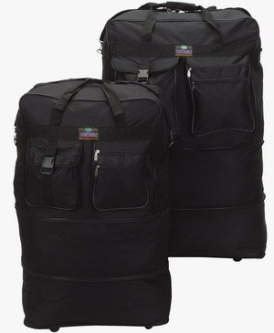 These bags (40" Expandable Wheeled Bags Rolling Duffel Spinner Luggage) are terrible! Used one for a weekend trip and had to throw it away when I got home. The bottom front of the bag ripped out and I didn't even have it packed full. The wheels are not very sturdy and don't roll easily. Terrible waste of money. :(