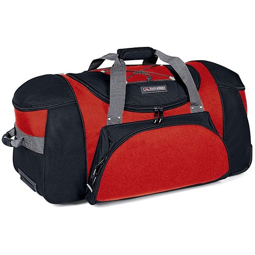 High Sierra Sports A.T. Gear Classic Wheeled Duffel... incredibly versatile. Pull it on wheels, wear it as a backpack or tote it like a duffel! Any way you carry it... it's a great Bag: Large main compartment with u-shaped zippered opening; Zippered front accessory pocket; 2 top-loading end compartments; Inline skate-style wheels with corner protectors and extendible, telescoping handle locks into place for a smooth roll; Elastic shock cord on top to lash your coat or sweater; Conveniently hidden backpack straps behind a zippered bottom panel; Durable 600-denier Duralite. Pick the size that suits your needs best. 30 x 15 x 14", 5,890 cubic inches. State Color. Get yours now! AVAILABLE SEPARATELY: 26" - word search in our Store for 'Wheeled Duffel'. High Sierra Sports A.T. Gear Classic 30" Wheeled Duffel