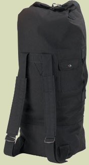 G.I. Style Double-Strap Black Duffle Bag Heavyweight cotton canvas 22" x 38" Two adjustable shoulder straps