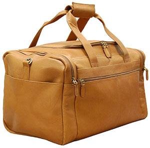 Dorado Vaquetta Leather 18 inch Duffel fits most airline's carry-on regulations. The duffel also features a 'U-shaped' zippered opening, spacious main compartment, zippered pocket on both ends, slit accessory pocket on one end, and removable and adjustable leather shoulder strap. Zippered front pocket is for easy storage.