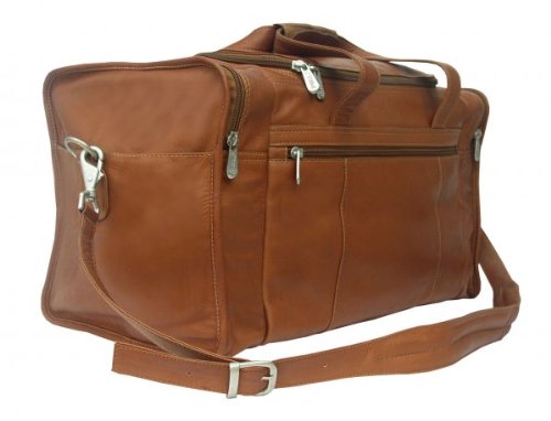 The Piel Leather Travel Duffel with Side Pockets brings together the convenience of a duffel bag and the elegance of leather. This duffel bag made from full-grain leather in several colors to fit your style preferences is sized right to meet the carry-on size regulations for most airlines. Store your travel necessities inside a roomy main compartment with a front U-zip opening as well as two side zip compartments with large open pockets. It has double handles and an adjustable/removable shoulder strap for easy carrying. Covered by a 3-year manufacturer's warranty. Dimensions: 19W x 10D x 11H inches.About Piel Inc.Piel provides the finest luggage made from full-grain leather making it "The Leader in Naked Leather" since 1972. Designed for today's fashion-conscious travelers Piel offers a collection of exquisite suitcases garment bags briefcases and more.