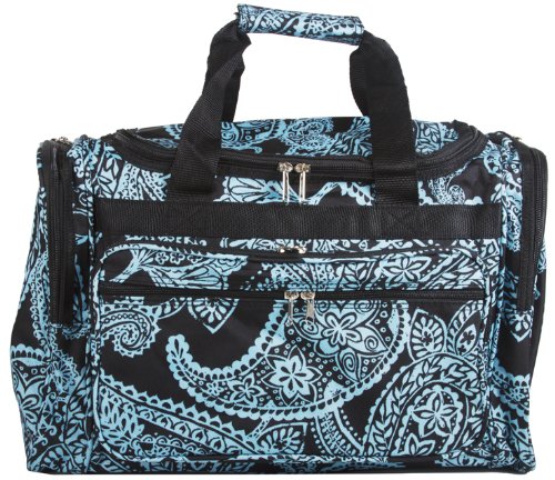 Large 22" Black Blue Paisley Print Duffle Dance Gym Bag Luggage Carry On