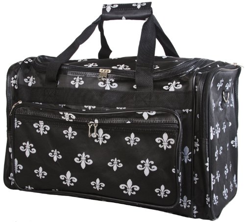 Black with Silver Fleur De Lis Print Duffle Carrying Bag - 22"