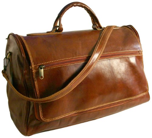 150Brown Color: Vecchio Brown Features: -Available in black, orange, Tuscan red, and Vecchio brown.-Polished Italian calfskin leather.-Handmade in Tuscany, Italy.-Double-stitched seams.-Detachable shoulder strap.-Brass hardware.-Reinforced handles.-Outside zip pocket.-Inside zip pocket.-Interior lined with 100pct cotton/denim.-Wide opening for easy packing.-Lifetime manufacturer guarantee. Dimensions: -Overall Dimensions: 12'' H x 21'' W x 10'' D.