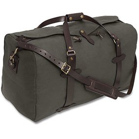 222-OT Color: Otter Green Pictured in Otter Green Features: -Available in Otter Green, Brown and Tan. -Constructed of 100pct cotton twill. -Two inside pockets (one on each end). -Two-way brass zipper with leather pulls. -Storm flap secured by bridle leather tab with snap. -Bridle leather carrying handles with handgrip. -Removable and adjustable bridle leather shoulder strap with shoulder pad. -Dimensions: 14'' H x 25'' W x 13'' D.