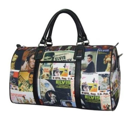 A classic carry-on size duffel bag perfect for overnight and weekends. Features a zipper closure with handles. Interior Elvis lining. 16.5WX11HX8.5D