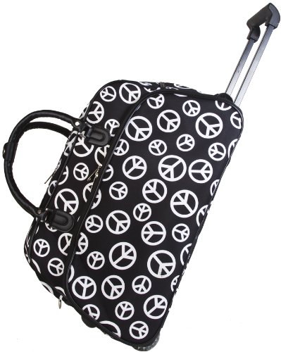 Black Peace Sign 21-inch Carry On Rolling Upright Duffle Bag