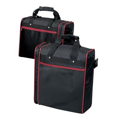 6235E-Black Color: Black Features: -Product sold separately.-Expands an extra 6 inches.-Two dividers.-Detachable shelf inside can be removed completely and held by the elastic loop affix to top of webbing one side.-Six elastic pockets at door opening.-Outside mesh pocket and open pocket.-Foam padded. Construction: -Constructed of 420D nylon. Dimensions: -Dimensions:12 H x 12-18 W x 8 D.