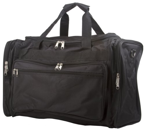 Stand out in style with this chic solid black duffle! This piece of lightweight luggage is great for jetsetters and can be used for a quick, close by staycation or for a weekend excursion to your favorite retreat. It's chic and fashionable design makes it a perfect choice for transporting gear for dance teams and cheer squads too! You can carry your cute duffle by its included durable, detachable shoulder strap or slide it easily over the handle of a rolling suitcase for stress-free and efficient, stylish transport. Never lose your boarding pass, ID, or other smaller items with exterior zipper compartments on the front and sides of this security checkpoint friendly bag. Fully lined with black linen, keeping it clean is easy! This multipurpose bag can also be used as an attractive diaper bag for the mom on the go!