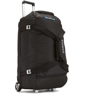 Large capacity gear bag with a wide mouth access to easily load helmets, boots, gloves, jackets and other travel essentials.Features Aluminum hardware and water-resistant fabrics combine to create a lightweight, durable bag. Durable exoskeleton and a molded polypropylene back panel absorb the impact of rugged travel. Tough, oversized wheels and Thule V-Tubing telescoping handles guarantee a smooth, steady and straight pull for years Compression straps customize the bag to the size of your load. Heat-molded, crush-proof SafeZone compartment protects eyewear, portable electronics and other fragile gear (compartment locks and can be removed for extra cargo room) Divided main compartment keeps clean-from-dirty, wet-from-dry, and work-from-play. Capacity: 5310 cu in / 87 L Weight: 9 lb 8 oz / 4.3 kg Dimensions: 29.1 x 16.1 x 15.7 in / 74 x 41 x 40 cm