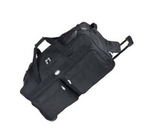 Travel in ease with this handy duffel. It has a sturdy telescopic handle, and 2" webing side handles with a grip. This 22" duffle comes equipped with 3 large wheels, to carry a heavy load. Overall Size: 42" w x 16.5" h x 16.5" d; 11,400 cu. in. Made of 600 Denier polyester. Custom imprinting/embroidery available for large quantities.
