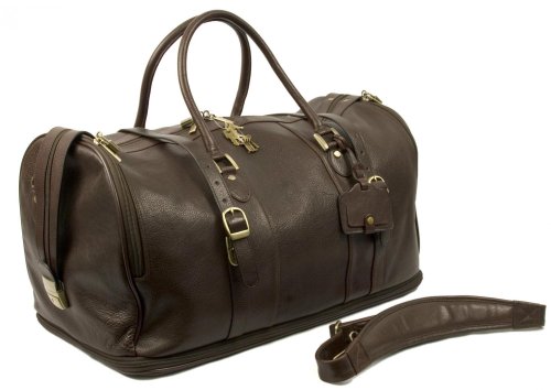 D009-02-09 Color: Venetian Brown Features: -Carry-on duffel.-Oversized zipper and expandable bottom provide extra room.-Two adjustable buckled belts with tuck lock closures.-Comfort padded leather shoulder strap. Includes: -Includes lock and key. Construction: -Full top grain leather construction. Color/Finish: -Stunning hardware accents, functional and stylish. Dimensions: -Overall dimensions: 12"H x 22" W x 12" D.