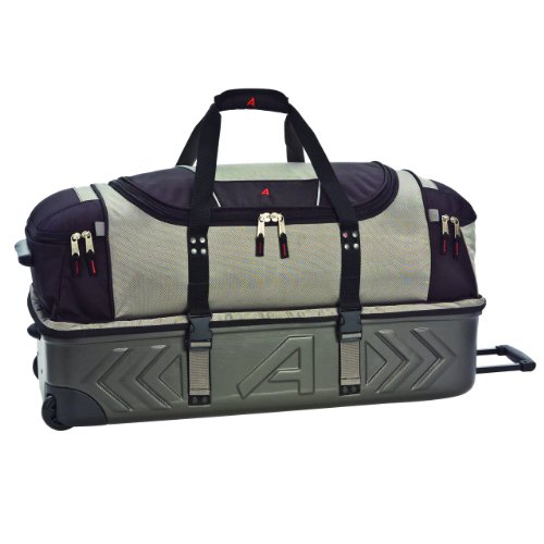 I bought this duffel not by Amazon, but in the store . It weights about 8.5 lbs. A little bit heavy, but the wheels compensate this disadvantage. The several compartments lets you organize all your stuff. You can disable the upper part, and use it like a backpack. The armored bottom can be used as a expandable carry-on (the carry-on can be stand straight perfectly). BUT IF YOU WANT TO USE BOTH PARTS AS A SINGLE BAG, THERES IS NO WAY TO KEEP THIS DAMNED THING UP STRAIGHT !!!!! (Thats why I don't put the 5 star rating). The upper part needs to be stuffed with all your things (manly at the bottom compartment) to keep it in some kind of balance. I looked like circus clown at the airport, trying to standing up, pull and leave my "all brad new Athalon". If you travel with more than one bag, this one will never help you walking down at the airport.