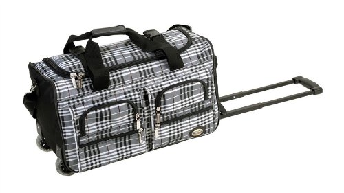 Travel in style with this great soft-sided rolling duffle bag. Bag features a heavy duty polyester construction. Inline skate wheels for superior mobility, internal retractable hide-away handle system, U-top opening provides easy access to roomy zipper secured main compartment. Two fron zipper-secured compartments, adjustable ergonomic shoulder strap. Made of 600 denier heavy duty polyester. Measures 22"L x 11"W x 12"H Dimensions: