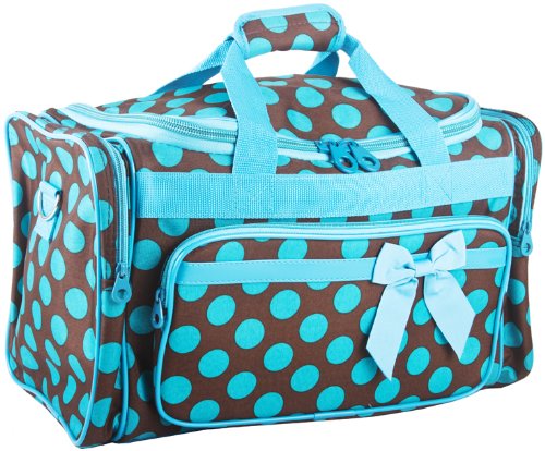 Blue Turquoise and Brown Polka Dot Duffle Bag Carry on Luggage 19"