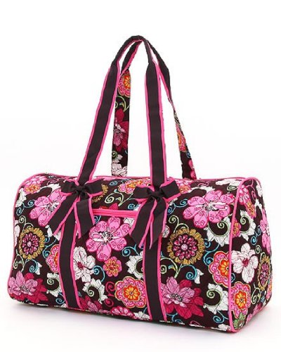 Belvah Quilted Floral 21" Duffle Bag (Brown/Fuchsia)