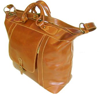 Tack Duffle comes in three colors - Siena Brown, Olive Brown, and Vecchio Brown. It is an authentic, functional, and high quality duffle bag combining oil calf-skin leather, double stitched seams, and brass hardware. It is a unique travel bag because the side flap and pocket come in very handy when packing travel books, airline tickets, and passports - imagine no more panic because you can't find your passport! The interior of this travel bag is lined with rugged 100% Cotton/Denim so your clothes will always unpack smelling fresh. This piece of luggage also has an inside zip pocket for holding additional supplies.