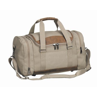 9614 Features: -Available in Tan.-Made of 14oz canvas.-Fully lined with 2 side compartments.-Floating lining allowing you to fit your shoes and laundry.-Open front pocket.-Four bottom feet to protect against wear.-Detachable shoulder strap.-Rear strap allowing it to fit over the pull-out handle on your luggage. Dimensions: -Overall Dimensions: 11'' H x 20'' W x 10'' D.