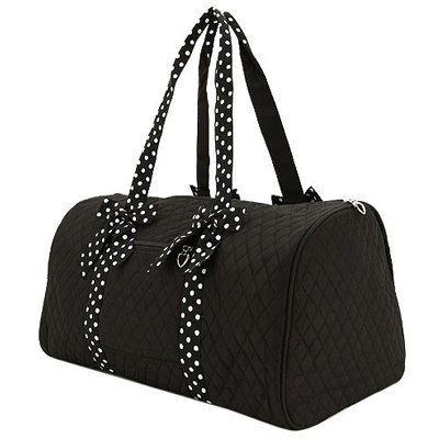 Large Quilted Duffle Bag with Polka Dots Accent Ribbons (Black/White)