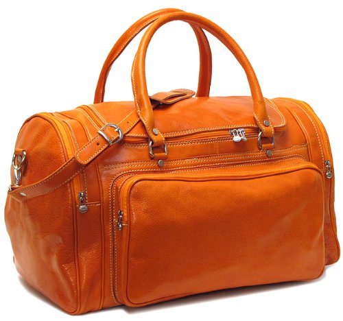 Torino duffle comes in four colors - tuscan red, orange, vecchio brown and black, Italian polished calf-skin leather, (12 inch high x 14 inch wide x 20 inch long)