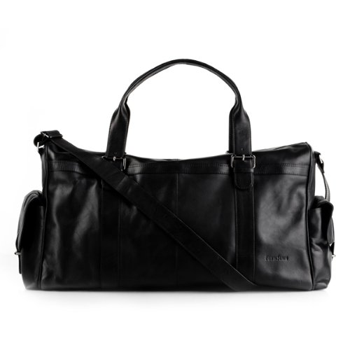 FEYNSINN XXL travel duffle bag ASHTON for men - crafted weekender (holdall) in genuine black leather (24 x 14 x 8 in.)