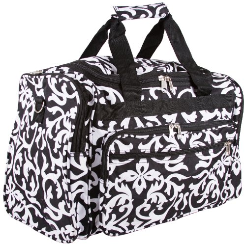 Black White Damask Floral Print Duffle Dance Cheer Gym Bag 19"