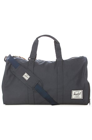 HERSCHEL SUPPLY Men's The Herschel x New Balance Novel Duffle Bag. The HERSCHEL SUPPLY x New Balance Novel Duffle Bag in Navy New! In collaboration with New Balance streetwear comes this ultra durable HERSCHEL SUPPLY duffle bag featuring a removable and adjustable shoulder strap. With tons of room, this duffle is perfect to use as an overnight bag. Check out more quality HERSCHEL SUPPLY backpacks and accessories on Karmaloop.com. Main zipper closure Pebbled leather zipper pulls Front sleeve pocket Measures 13.5H x 23.5W x 13.5D Imported By Herschel Supply.