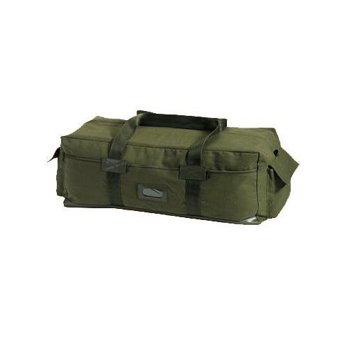 Olive Drab Israeli Type Canvas Tactical Duffle Bag - Dimensions: 34" x 15" x 12". 20. Oz. Heavyweight Canvas. 1 Pc. Per Improved Poly Bag With Insert Card. 2 Hook and Loop Closed End Pouches. Extra Long Vinyl Reinforced Carry Handles. Vinyl D Rings. 3 Zippered Outside Pockets. ID Holder. Waterproof Bottom.