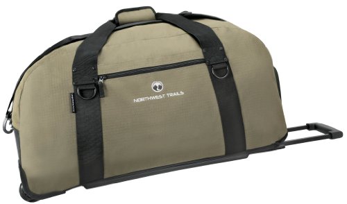 The northwest trails rolling gear bag offers you the best of both worlds. the duffel style is proven to be both versatile ande stylish to be used to carry your gear for anything from outdoor activities, to exercising, to travel. it has a large main compartment and an easily accessible exterior zippered pocket.the recessed in-line skate wheel system is constructed using high impact wheel housings for maximum protection and easy rolling durability. the lock-up & lock-down handle system has a centrally located push button for easy use. it locks in at two different height settings so you can find the one that works most comfortably for you. the handle can be lowered to store in its own hide-a-handle pocket. additional padding on the handles makes carrying heavy bags more comfortable. the retreat gear bag is constructed of water and tear resistant rip-stop polyester. this fabric has been designed to provide high durability and long lasting resistance to wear. the self-repairing nylon zippers with smooth-zip brand movement are easier than ever to open and close - even when the bag is fully packed.
