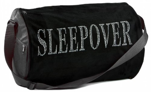 Black bling sleepover duffle bag - giggle time. Story time. Happy time. That's what sleepovers are all about The black bling duffle bag says -inchsleepover-inch in sparkling studs. It is made of soft plush fabric and is fully lined. Features side zipper pocket and shoulder strap. 100-percent polyester.