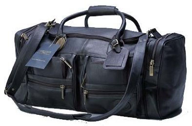 ClaireChase Large Executive Sport Vaqueta Leather Duffel Bag - The ClaireChase Executive Sport is large and roomy, but can still be carried on in most circumstances. - Features : * Large interior with heavy duty zippers that zip around allowing easy access to the interior. * Extremely heavy duty ALL LEATHER shoulder strap w/ very BOLD hardware. *Elegantly appointed satiny lining that is gorgeous and durable. * 4 large front pocket plus two over sized pockets on each end of the bag. * Features a very long pocket on the back side. * The finest grade of vaquetta Colombian leather. Very thick and durable but surprisingly lightweight. * Beautiful leather ID Tag with bold hardware. Dimensions: 22" x 12" x 13.5" 3 Year Warranty