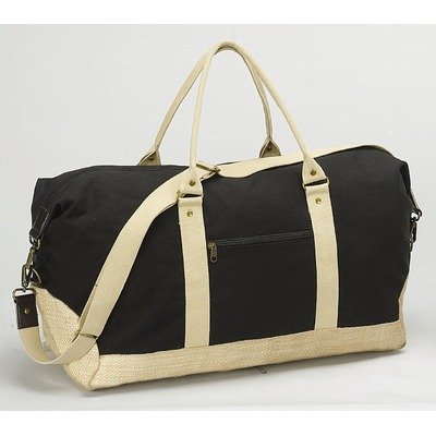 2740-Black Color: Black Duffels sold separately Features: -12 oz. natural cotton canvas and recycled coated straw. -Outside zip pocket is ideal for a phone and keys. -Spacious interior is fully lined and features an additional zip pocket perfect for a wallet and other personal items. -Antique brass fixtures, dual padded handles. -Adjustable shoulder strap complete this coconscious piece. -Full center zip and hook closures on each side adjust the size and shape of the bag to suit your needs. -Overall Dimensions: 13.5'' H x 21'' W x 10.5'' D.
