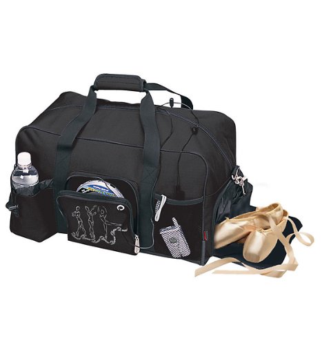 This spacious duffel bag is a must have for the everyday dancer! It features a shoe compartment, water bottle and cell phone holder, iPod pocket and an adjustable, removable strap. Size: 19 ½"W x 12 ½"H x 11"D.